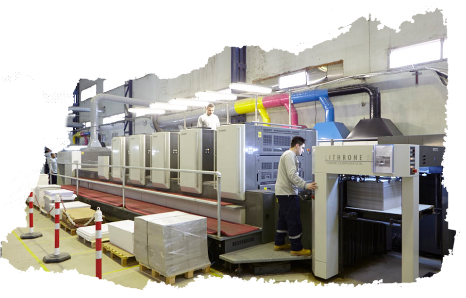 Yüksek teknolojik donanıma sahip üretim bandımızda, hızlı ve kaliteli baskı süreci gerçekleştirilir. Tasarıma göre selefon, vernik vb. uygulamalar gerçekleştirilir.